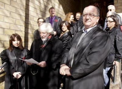 El grupo de abogados que se concentró en Vila en apoyo a Garzón.